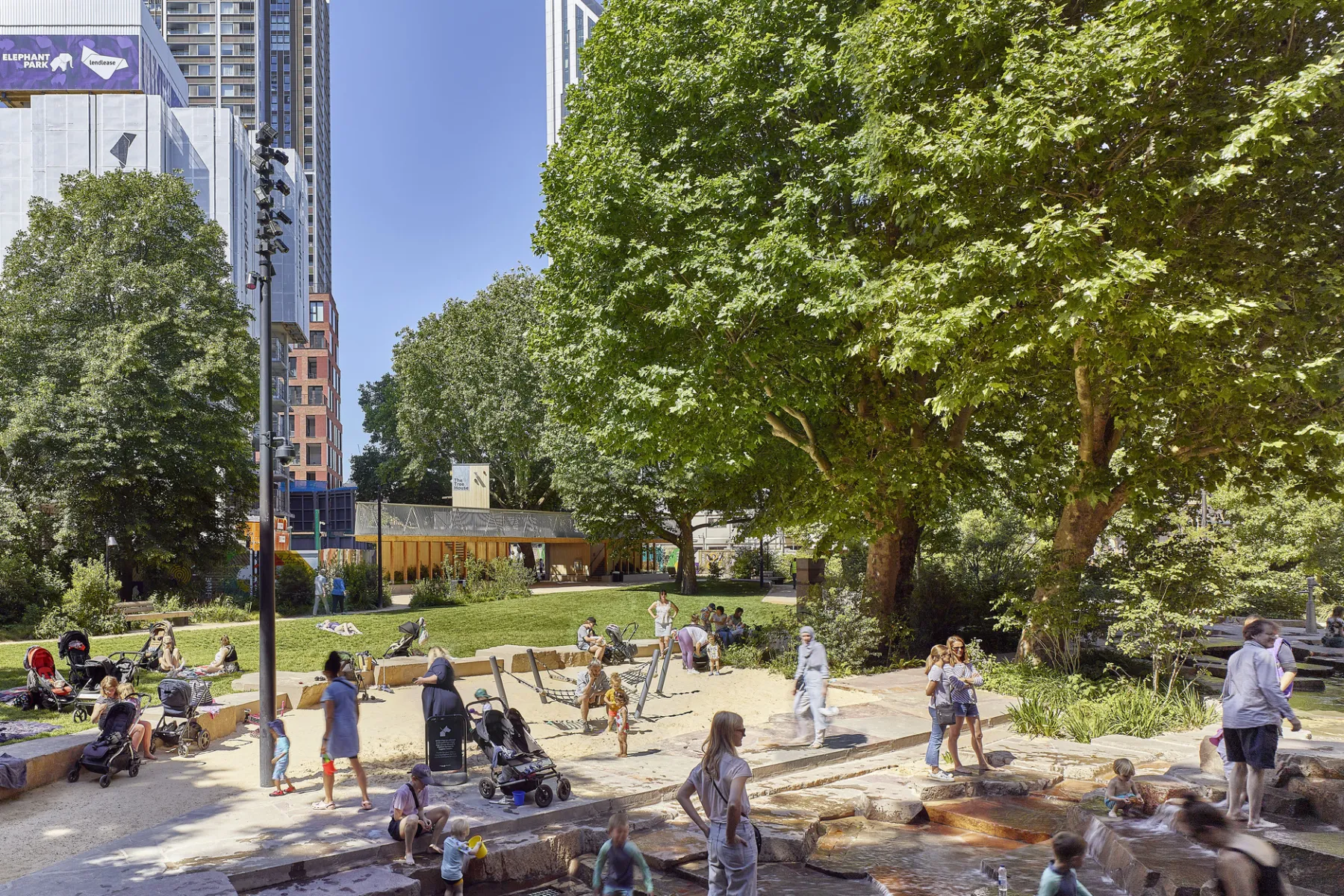 An exemplary park at the centre of Elephant Park, London’s greenest new neighbourhood.