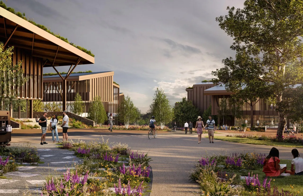 The illustrative masterplan proposes the creation of a new knowledge quarter for Winchester, where sustainability, wellbeing, and biodiversity are embedded throughout the design. The scheme incorporates a mix of uses across the development, including workspaces, learning and innovation spaces along with a range of supporting amenity uses, which could include retail, cafés and restaurants, a hotel, community and leisure.