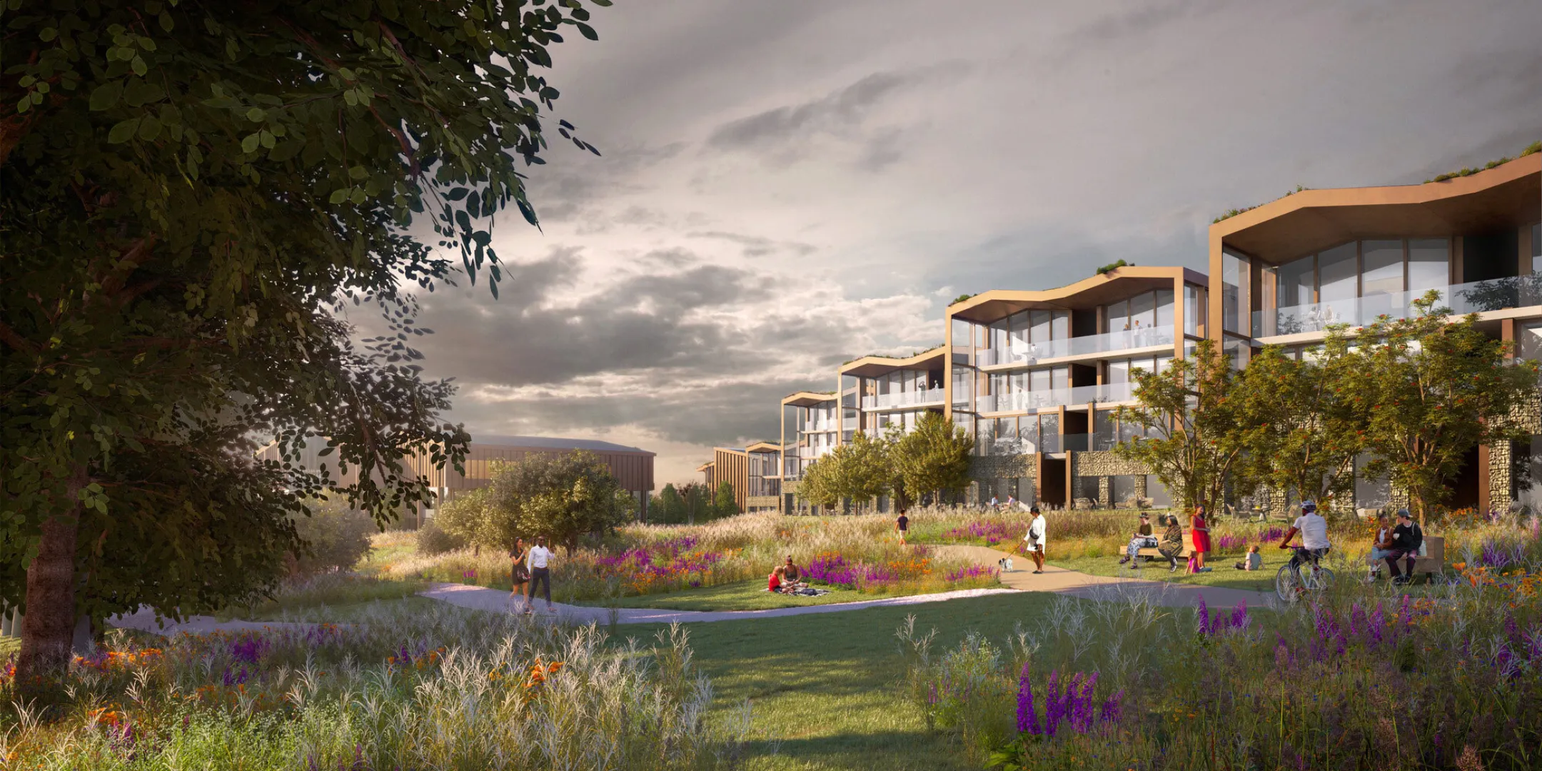 The landscape-led masterplan includes more than 26ha of publicly accessible, undeveloped, and green open space for Winchester residents, which will be a valuable addition to the site’s existing ecology and deliver a biodiversity net gain in excess of 10%. Great care has been taken in the masterplan to integrate the new buildings into the existing downland landscape, integrating green roofs and carefully modulating the massing so that the development sits in harmony with its surrounding landscape. This was developed and agreed with stakeholders through an extensive iterative LVIA testing process.